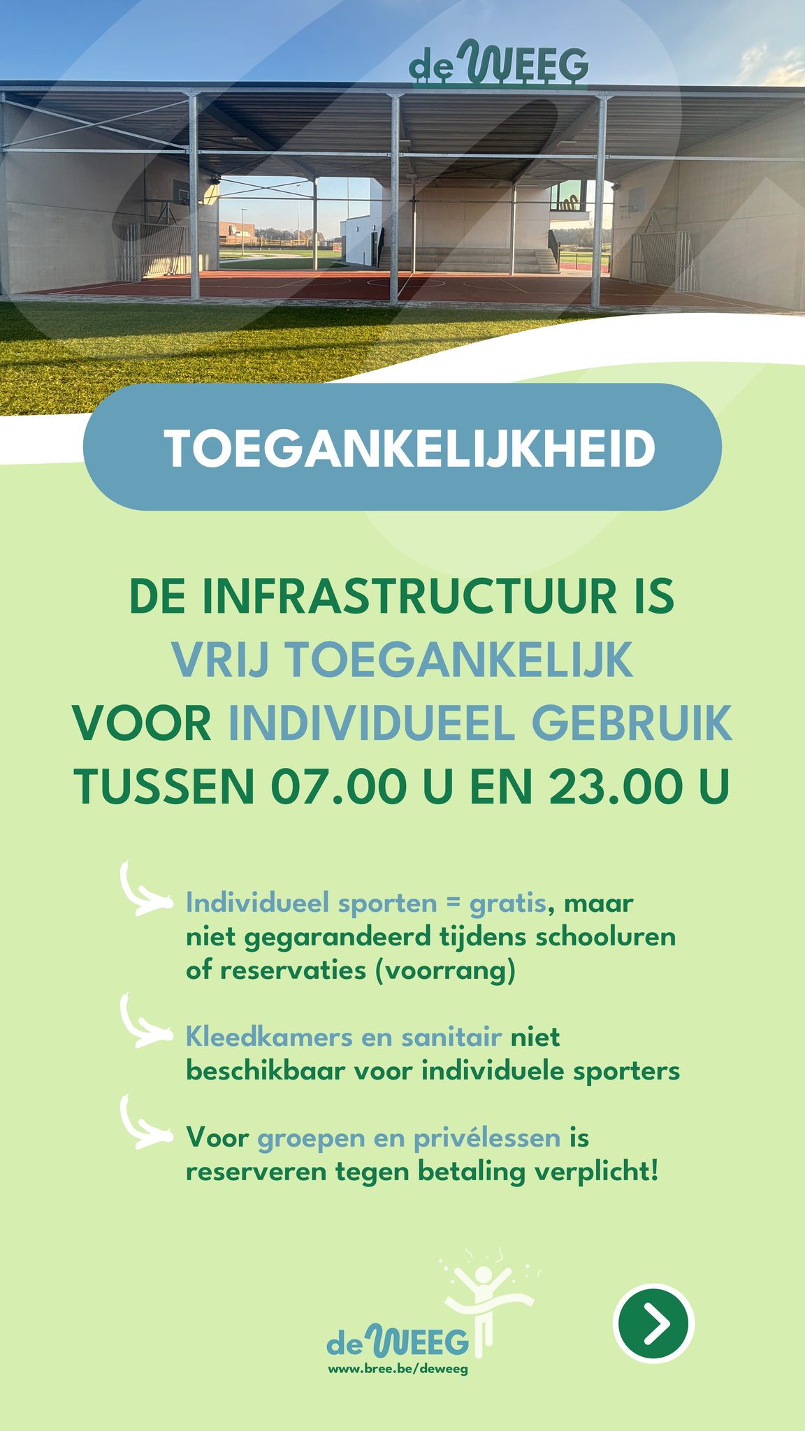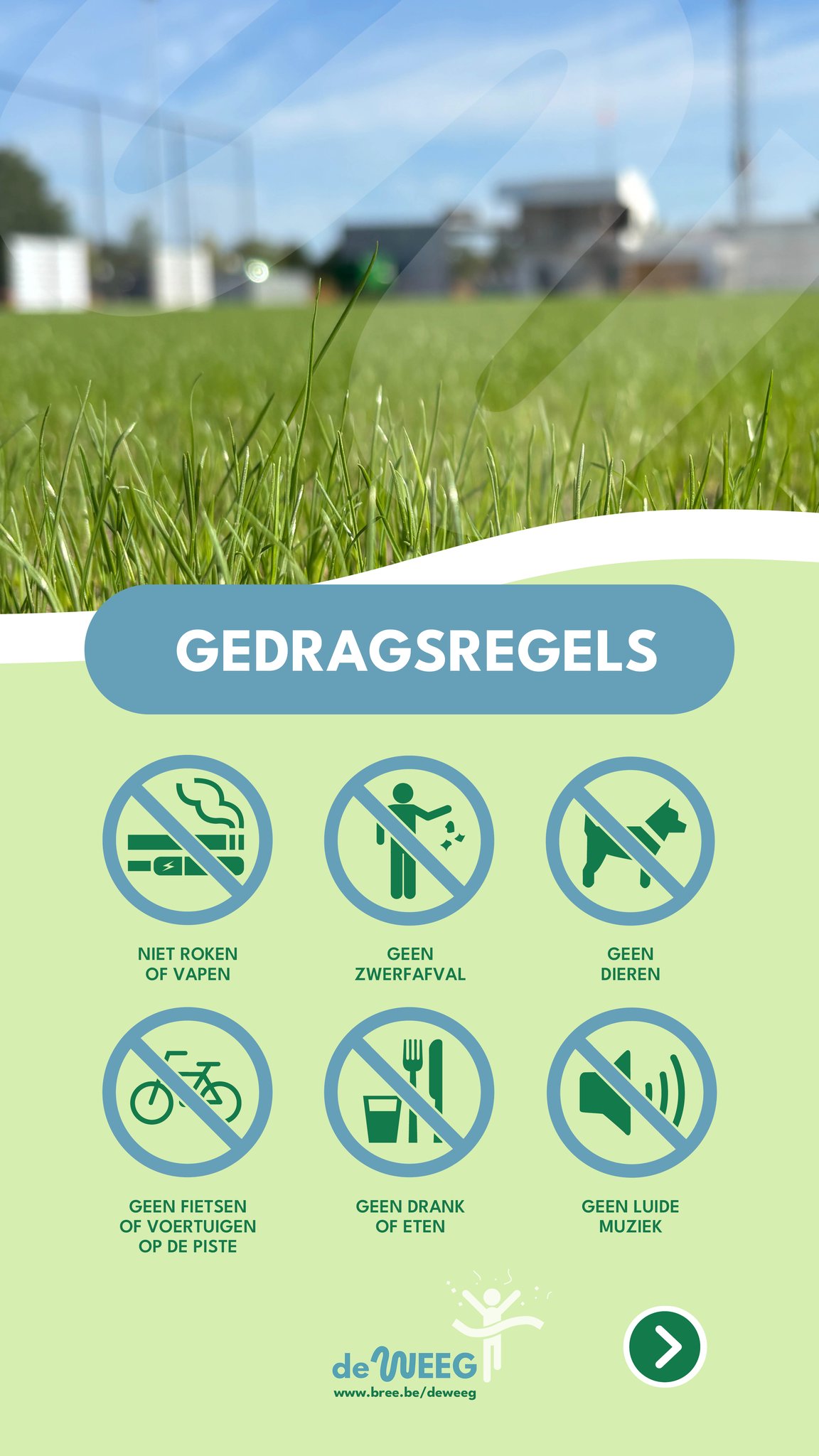 Bedankt om mee zorg te dragen voor deze nieuwe sportlocatie in Bree. Samen geven we De Weeg een veilige en nette start!